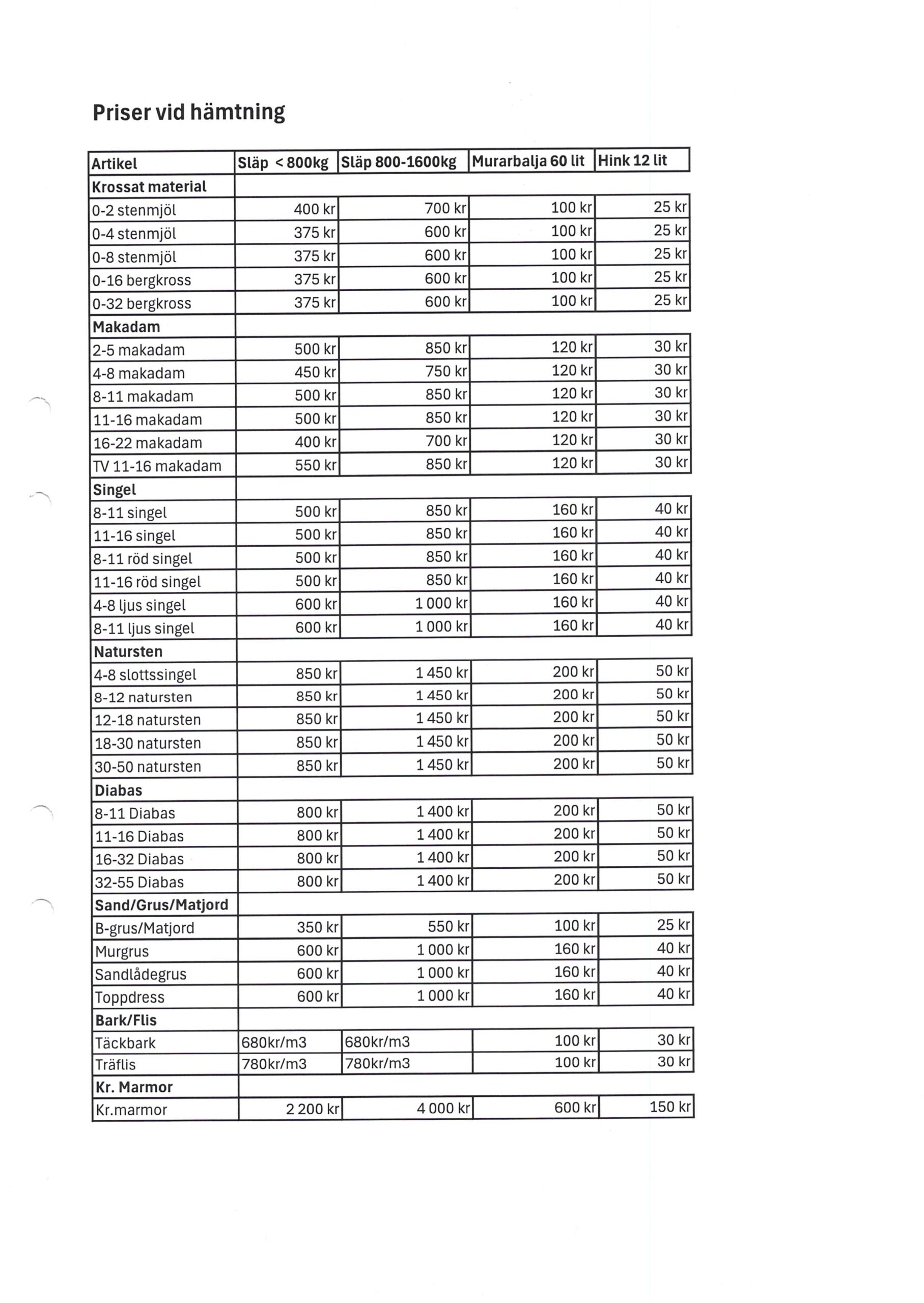 Stenmjöl och bergkross från 375kr, 120kr eller 30kr